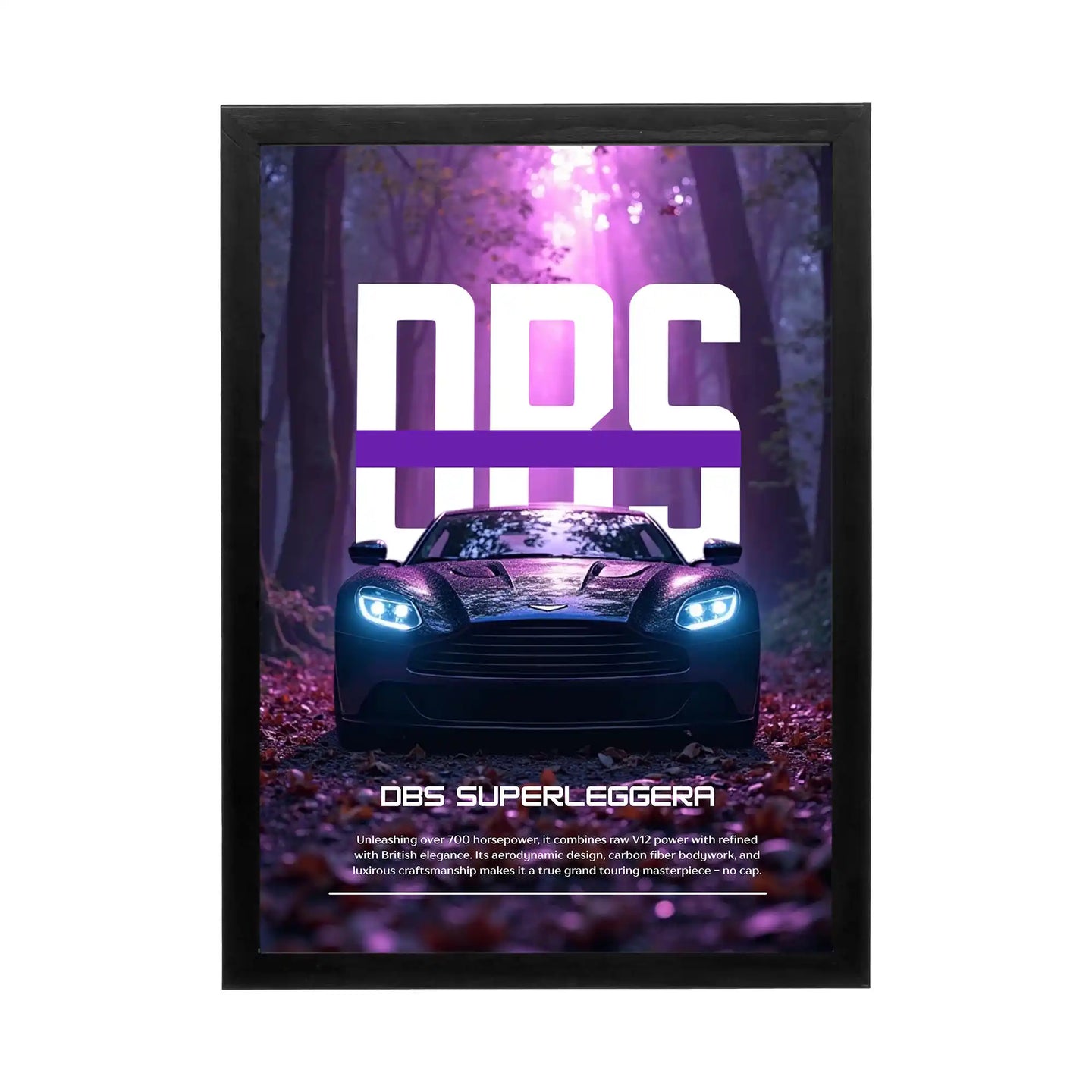 Experience the majesty of the Aston Martin DBS Superleggera in this striking design that captures the essence of British elegance and raw performance. This artwork features the DBS, combining its infamous 700 horsepower V12 engine with a design that exudes luxury and innovation. The ethereal purples of the forest backdrop create a dynamic contrast that emphasizes the car's sleek lines and sophisticated craftsmanship, making it a true masterpiece for car enthusiasts and collectors alike. Bring home this piece that not only celebrates automotive excellence but also serves as a stunning aesthetic focal point in any space.