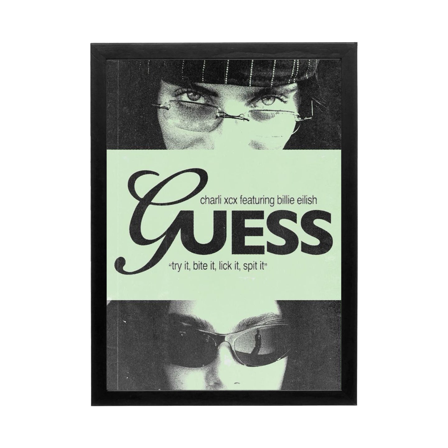 Celebrate the unique artistry of Billie Eilish and Charli XCX with this striking design inspired by their collaboration 'GUESS'. Featuring vintage aesthetics and a bold statement, this piece encapsulates the rebellious spirit and innovative sound that has captured millions. Perfect for fans or anyone looking to add a touch of modern art to their space, this design promises to spark conversations and admiration.