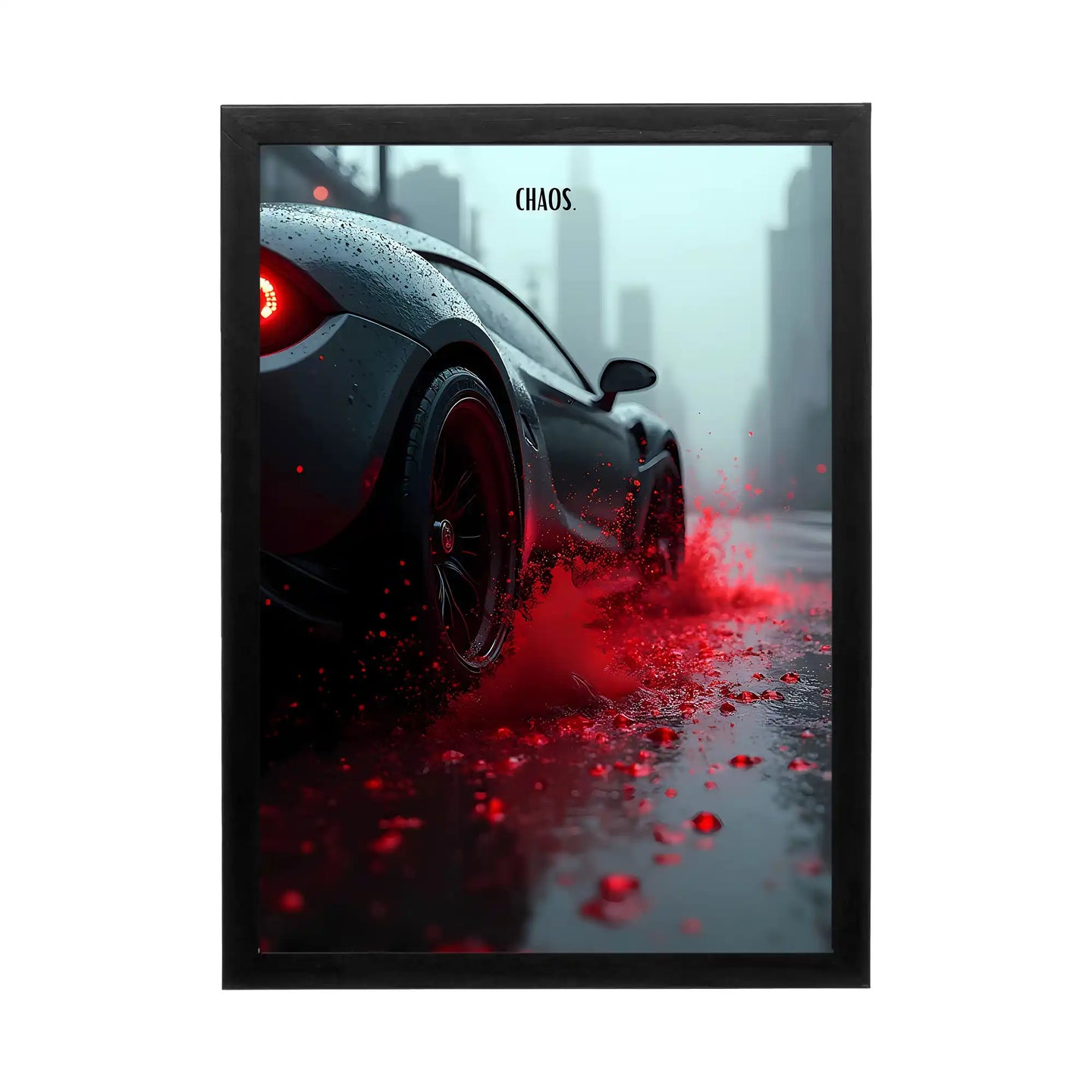 Immerse yourself in the electrifying world of speed and emotion with this striking design titled 'Chaos'. Featuring a sleek, powerful car splashing through vibrant red puddles, the artwork captures the essence of high-octane excitement. Each droplet reflects the thrill of racing, making it a perfect addition to your collection. Elevate your space with this homage to sheer adrenaline and automotive excellence—ideal for enthusiasts who appreciate both artistry and performance. Let this artwork inspire your passion for the road and the chaos that comes with it.