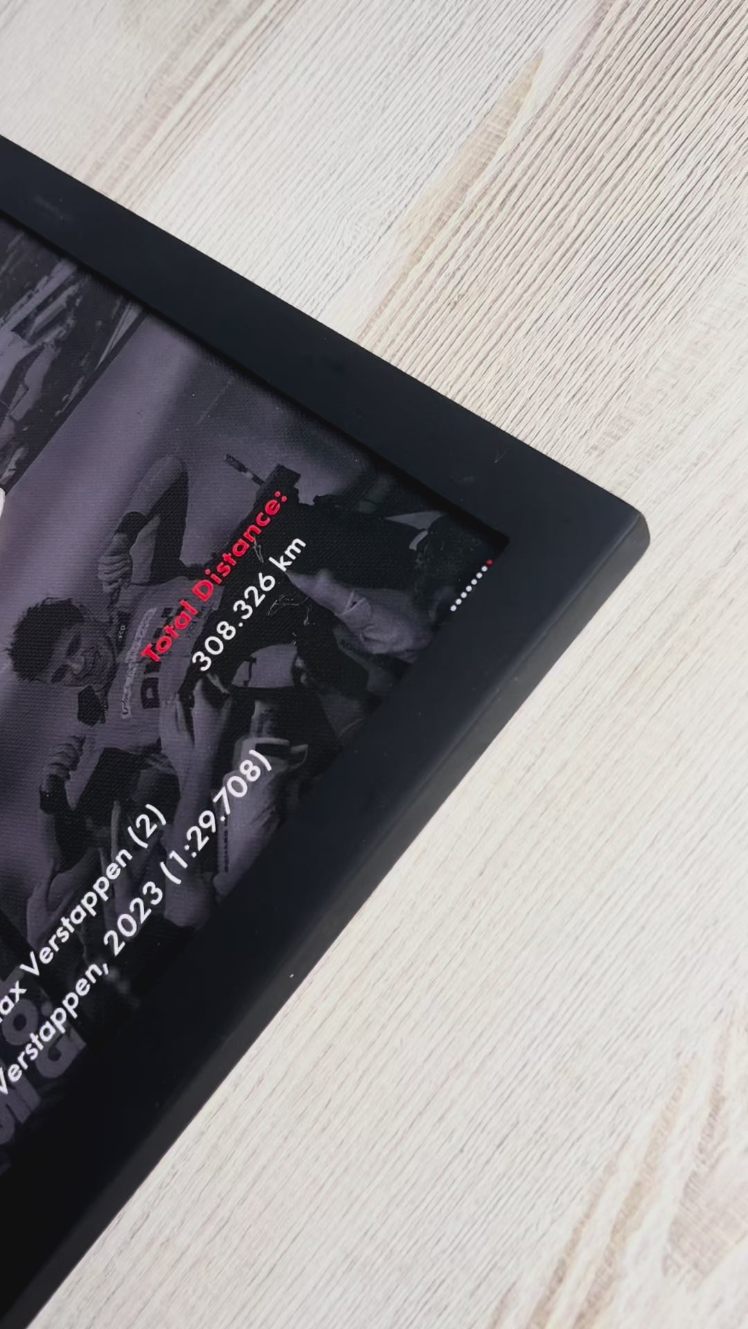 Crafted from high-quality wood, our frame adds weight, durability, and a refined finish to your piece. The sleek matte surface highlights the glowing circuit while protecting it for years to come, built to feel as iconic as the track it holds.