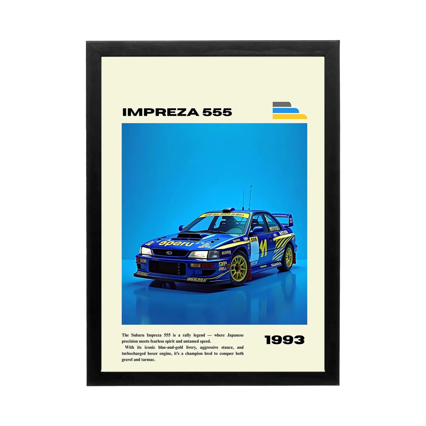 Celebrate the legacy of the Subaru Impreza 555, a rally icon defined by its iconic blue-and-yellow livery, aggressive stance, and legendary performance. This stunning design captures the true spirit of motorsport and the thrill of racing, making it a must-have for any car enthusiast. With its turbocharged engine and renowned history, the Impreza 555 isn’t just a car; it’s a symbol of speed, power, and the relentless pursuit of victory. Perfect for any space, this artwork will ignite your passion for the world of rally racing.